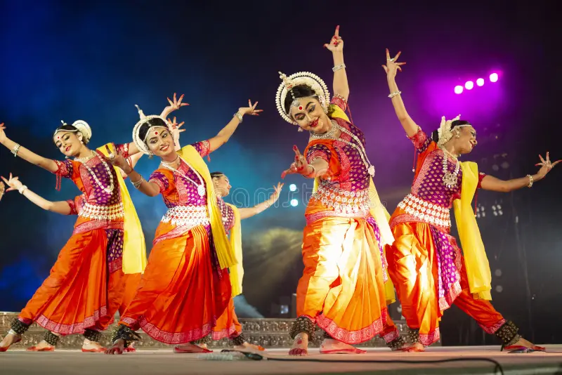 Konark celebrates Odissi dance and hosts events like the Konark Dance Festival at end of the year December.